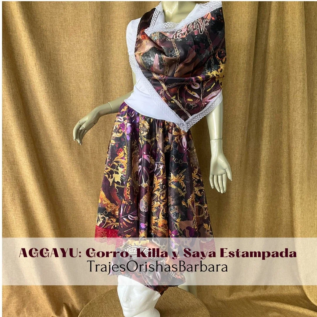 AGGAYU SOLA/Set Aggayu: Gorro, quilla y saya en Edo "Full print"/Estampado por sublimación/Miami.